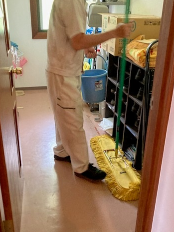 館内各部屋の清掃は、日付ごとに清掃場所が割り振られ、その日出勤のメンバーが手分けして清掃を行っています。