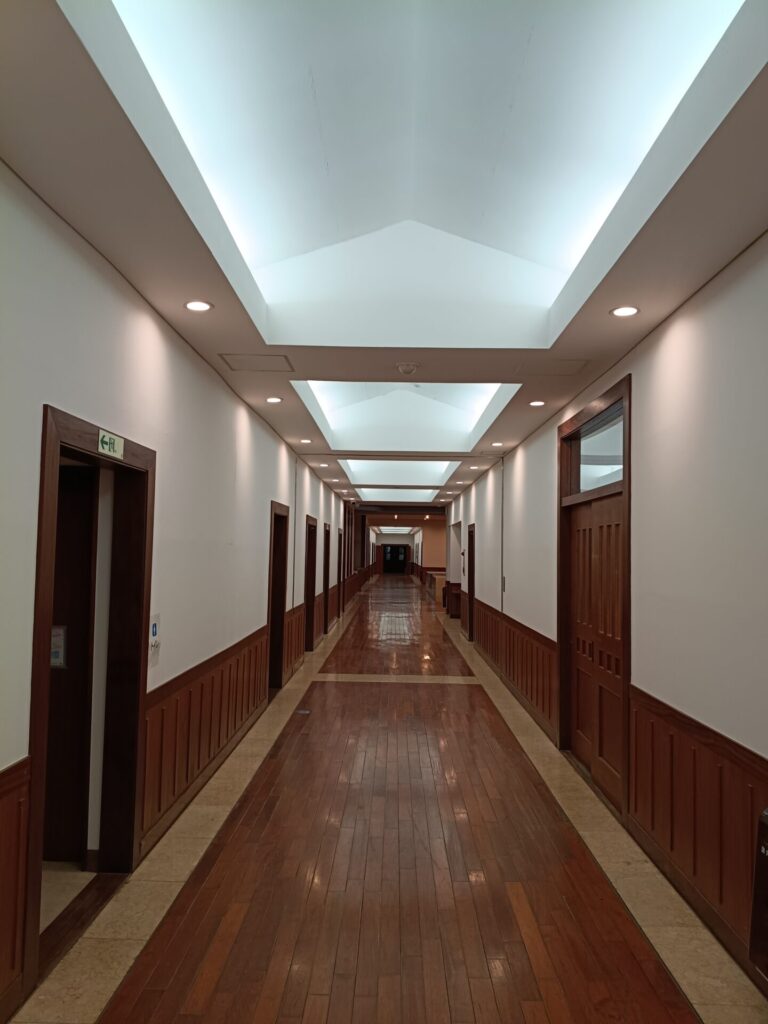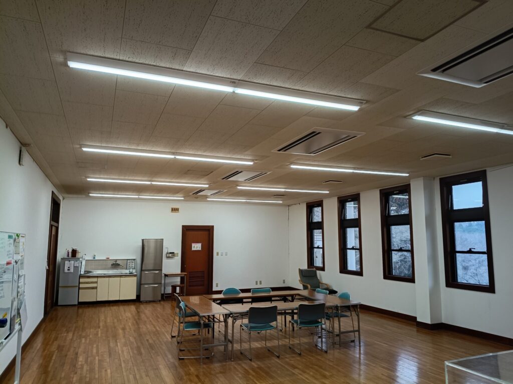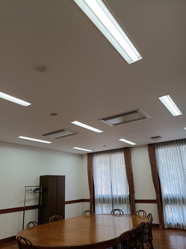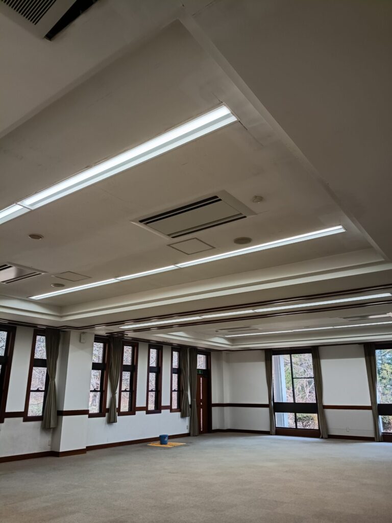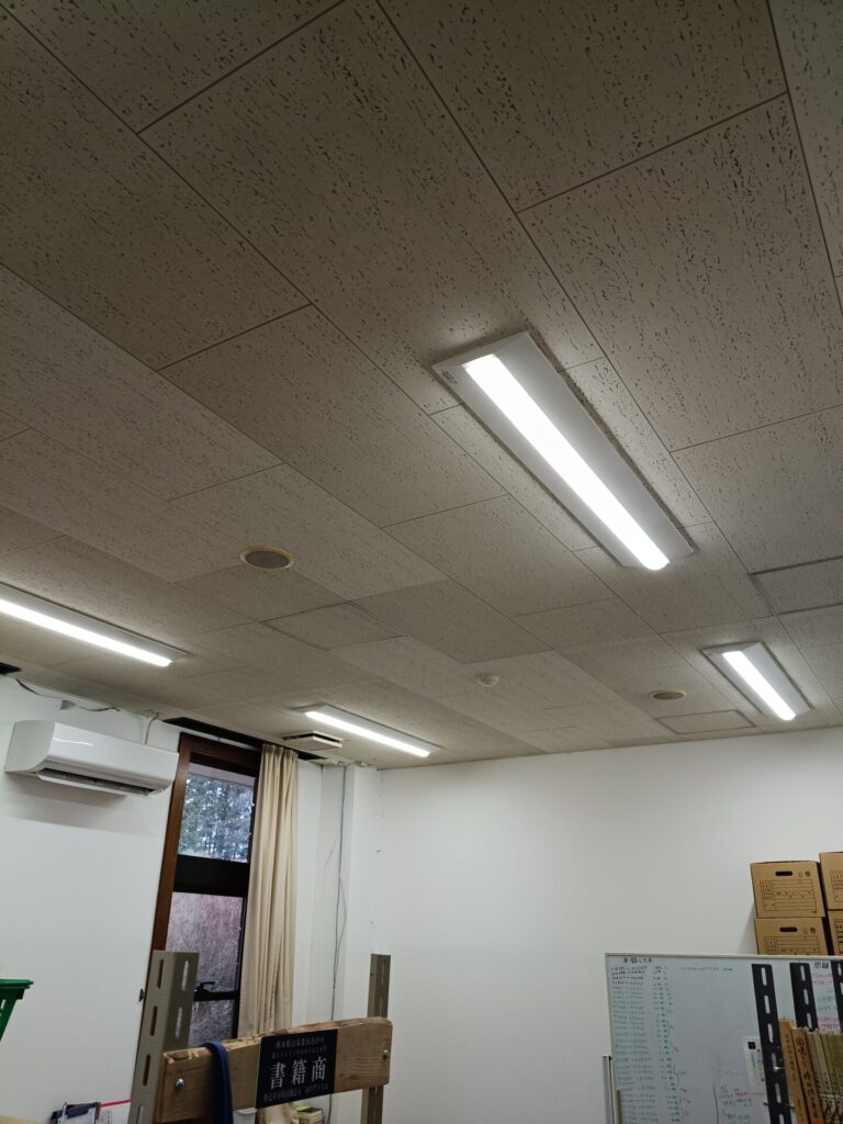 これまで館内の照明として活躍してくれた蛍光灯から、LEDに器具ごと入れ替える工事が完了しました。